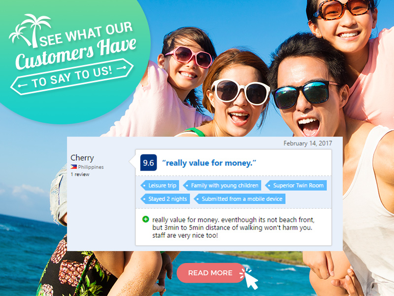 “We are happy to stay at Blue Ocean Boutique Hotel. All staffs are very friendly and room is clean. The seafood BBQ was fresh and tasty. We enjoy so much during our stay and sure will come back again. – James